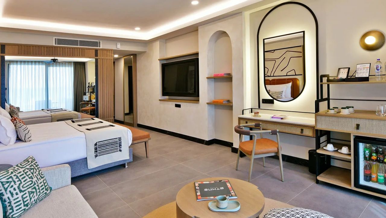 Pláž je vyzdobena etnickými vzory a nabízí pohodlný vstup do čistých vod Středozemního moře. V aquaparku najdete barevné tobogány a zábavné aktivity, které vám umožní prožít ty nejzajímavější chvíle. Bazény jsou neocenitelným místem odpočinku pro ty, kteří hledají pohodlí a klid.