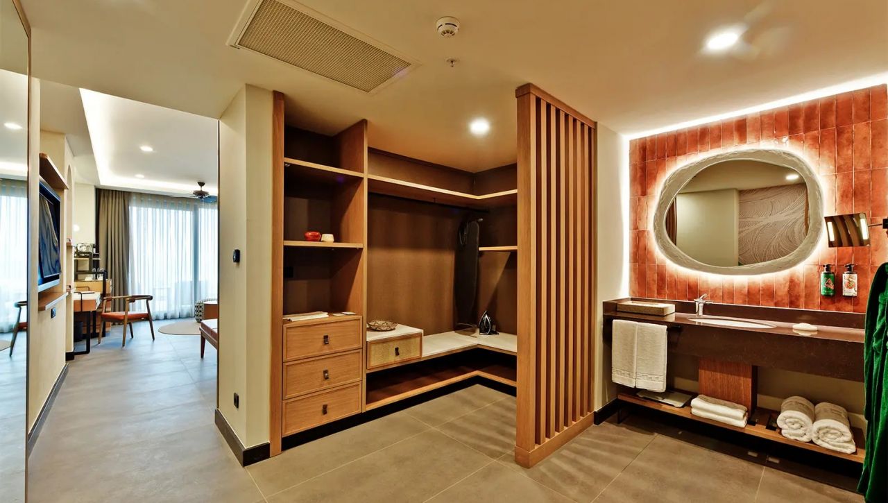 Různé typy pokojů s plochou od 56m² jsou standardně vybavené koupelnou, samostaným WC, IP Smart TV, telefonem s přímou volbou, klimatizací, elektronickým trezorem, vysoušečem vlasů, sadou pro osobní hygienu, župany a pantoflemi (pro dospělé & dětské), polštářovým menu, žehličkou a žehlícím prknem, příslušenstvím Nespresso.