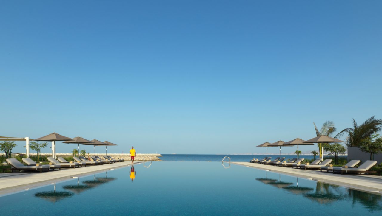 Spa centrum nabízí širokou škálu procedur inspirovaných ománskými tradicemi, aromaterapií a holistickými technikami. Pavilony pro páry, relaxační zóny, hydromasáže, hammam, detoxikační rituály, péče o pokožku a hluboce relaxační masáže vytvářejí prostor pro regeneraci a uvolnění. Wellbeing centrum zahrnuje i moderní fitness, jógu, běžecké trasy podél pobřeží a elegantní bazény, které obklopuje harmonický design resortu.
