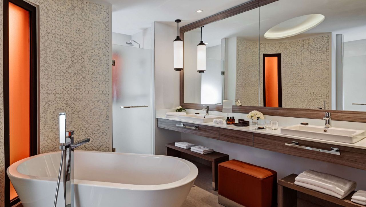 K dispozici je také moderní fitness centrum, lekce jógy a několik bazénů – včetně velkolepého hlavního bazénu lemovaného palmami a designových relaxačních zón pro hosty hledající klid a soukromí.