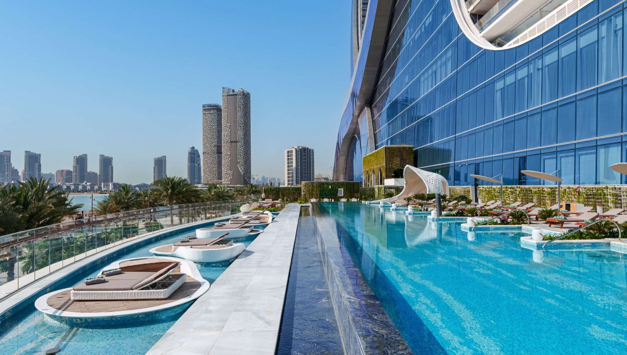 Resort disponuje sofistikovanými venkovními bazény obklopenými elegantními lounge zónami, které doplňuje prémiový servis a atmosféra uvolněného, avšak ikonicky luxusního prostředí. Pobřeží Lusailu dodává celému místu futuristickou kulisu moderní architektury, přístavu a promenády, která je ideální pro procházky při západu slunce i večerní atmosféru nového „města budoucnosti“.