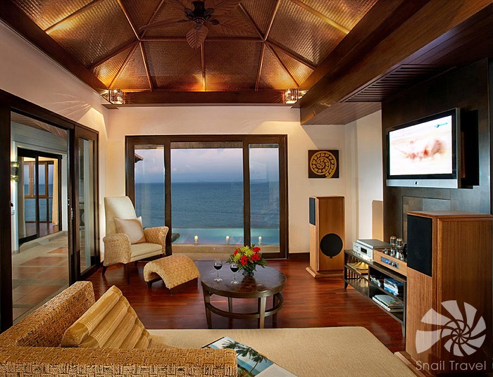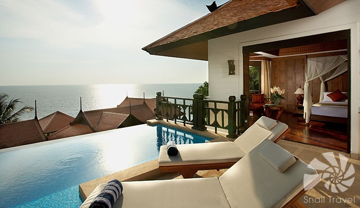 Pokoje, vilky a pavilony jsou navrženy v duchu thajské elegance, kde se dřevo, kámen a přírodní materiály spojují s moderními prvky a otevřeným prostorem. Každé ubytování má svůj vlastní charakter, ale všechny interiéry propojuje teplá barevná paleta, jemné detaily, prostorné terasy a výhledy na zahradu, moře nebo jezera. Hosté si mohou vybrat mezi vilami u pláže, pavilony na svahu s panoramaty nebo luxusními apartmány s přímým přístupem k bazénu. Soukromí, prostor a tropická atmosféra tvoří dohromady prostředí, které podporuje hlubokou relaxaci.