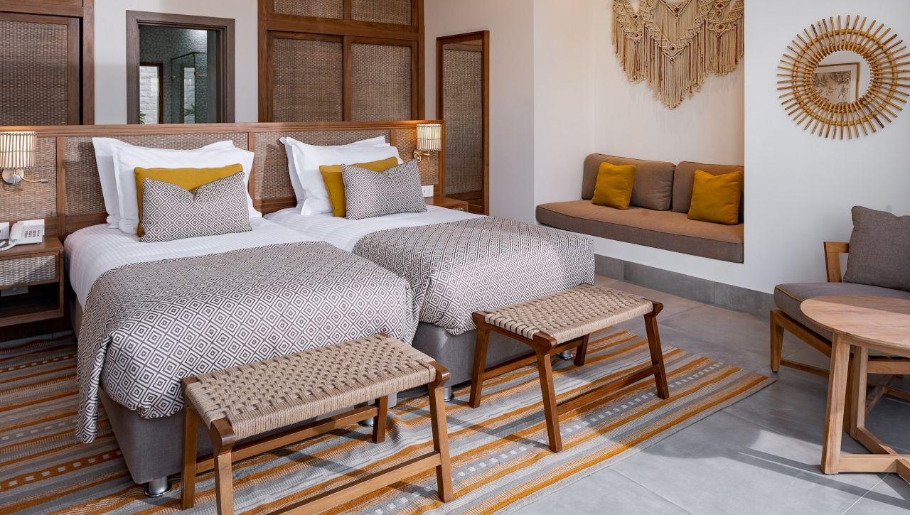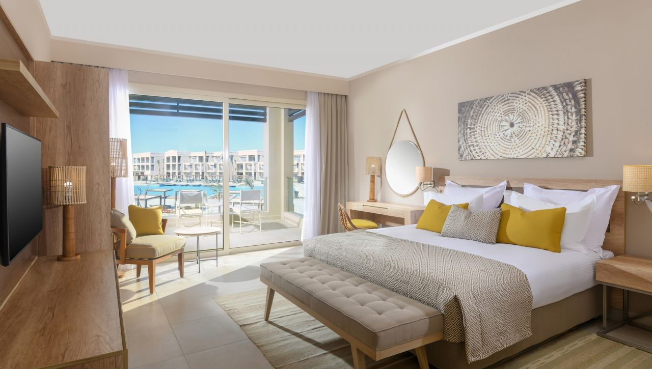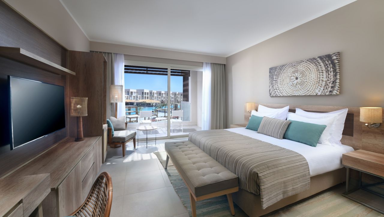 Pokoje a suity jsou laděné do jemných, přírodních tónů s důrazem na světlo, vzdušnost a elegantní otevřený design. Velkorysé balkony a terasy nabízejí výhled na moře, zahrady či laguny, zatímco interiéry spojují moderní architekturu s teplými detaily inspirovanými přírodou. Koupelny v mramorovém stylu, prémiové vybavení, kvalitní textilie a doplňky vytvářejí prostředí, které působí noblesně a přesto útulně. Suity vyšších kategorií nabízí přímý vstup do bazénu, privátní zahrady či soukromé terasy ideální pro klidná rána nebo romantické večery.