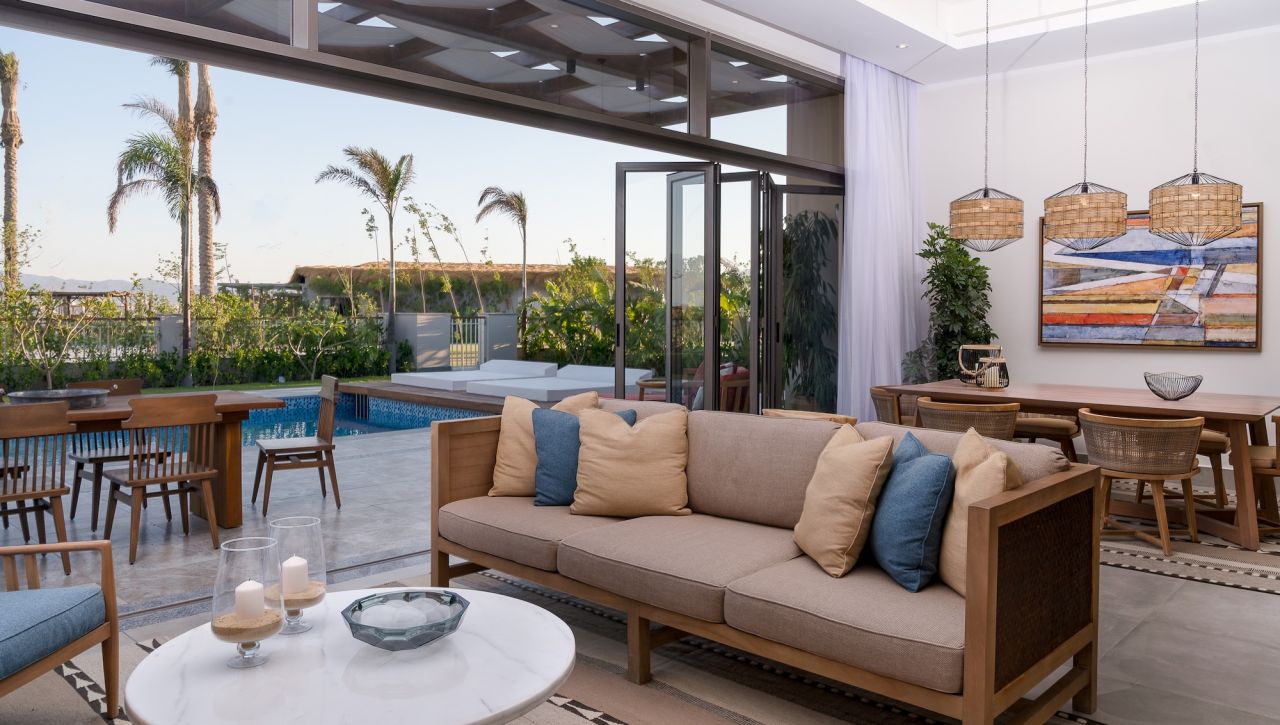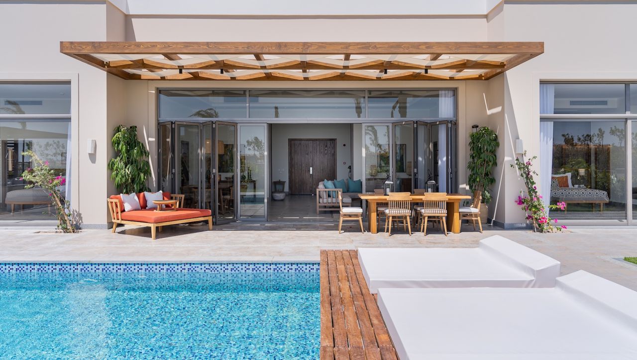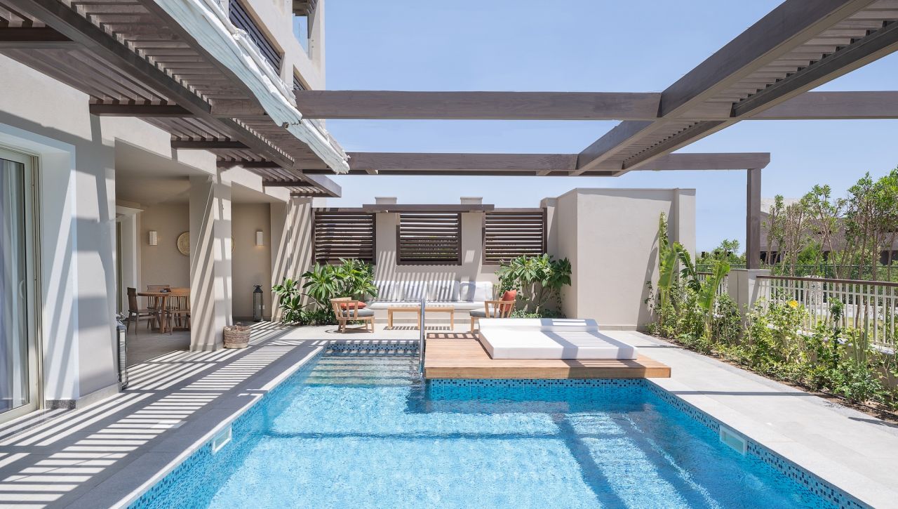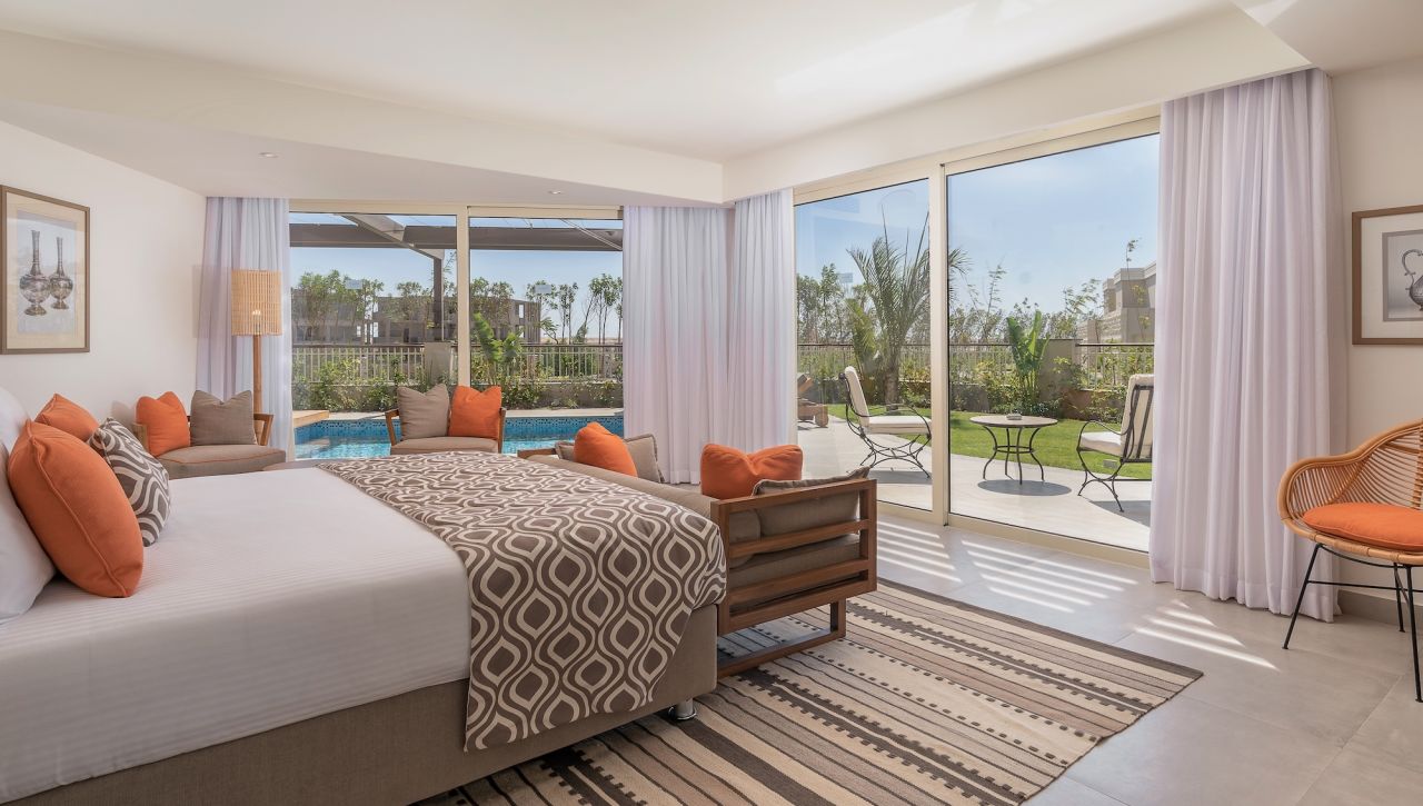 Pokoje a suity jsou laděné do jemných, přírodních tónů s důrazem na světlo, vzdušnost a elegantní otevřený design. Velkorysé balkony a terasy nabízejí výhled na moře, zahrady či laguny, zatímco interiéry spojují moderní architekturu s teplými detaily inspirovanými přírodou. Koupelny v mramorovém stylu, prémiové vybavení, kvalitní textilie a doplňky vytvářejí prostředí, které působí noblesně a přesto útulně. Suity vyšších kategorií nabízí přímý vstup do bazénu, privátní zahrady či soukromé terasy ideální pro klidná rána nebo romantické večery.